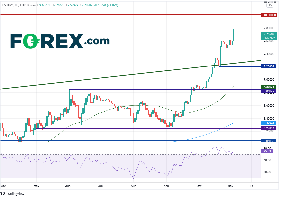 土耳其总统目前在幕后操纵央行,看到周三的通胀数据后或许相信自己迫使央行行长降息的做法正确。但一旦市场期待更多的降息,请小心美元/土耳其里拉引爆止损单后站上10.000。