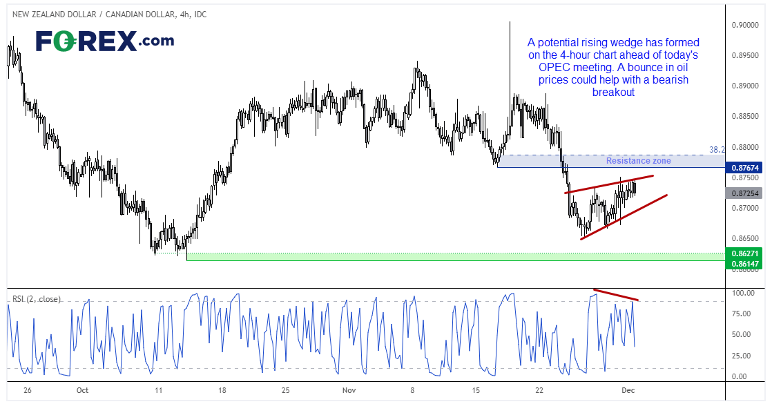 纽元/加元在OPEC会议召开前形成潜在看跌楔形