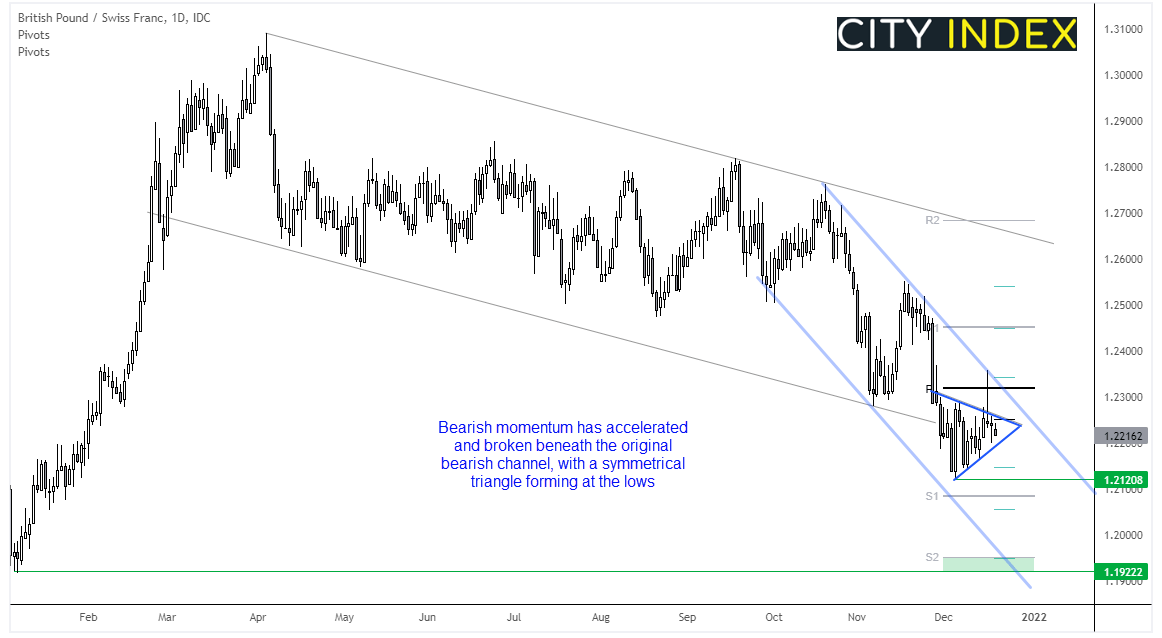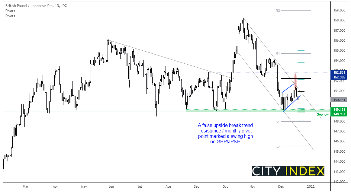 •  鉴于英国可能面临圣诞节封锁的头条消息以及奥密克戎变种相关关切,要警惕避险环境及英镑/瑞郎和英镑/日元潜在下破。