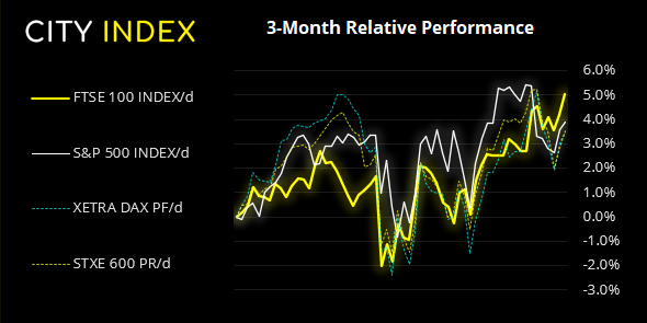 富时100指数昨天达成我们最初设定的7550目标(接近周线图和月线图一号阻力枢纽),但于趋势通道上部遇阻。但日线图趋势结构坚定看涨,因此,若市场情绪允许,股指有望攻向7600(甚至今天就可能达成)。
