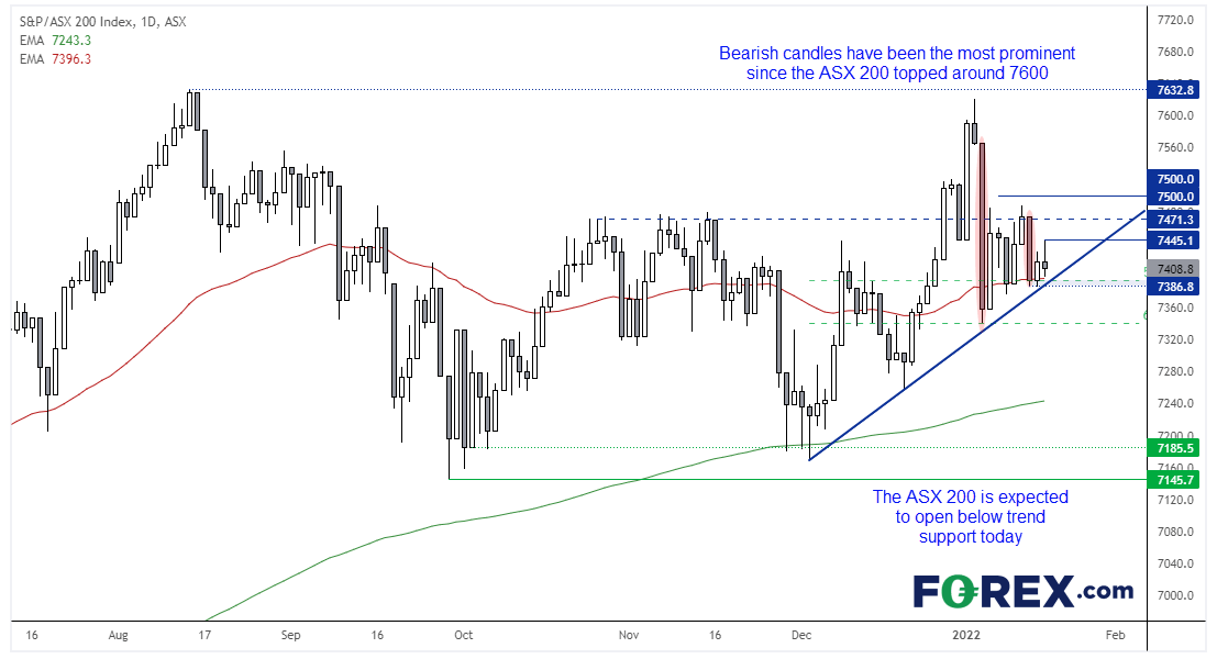 ASX 200开盘价可能报在7400下方