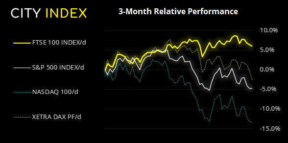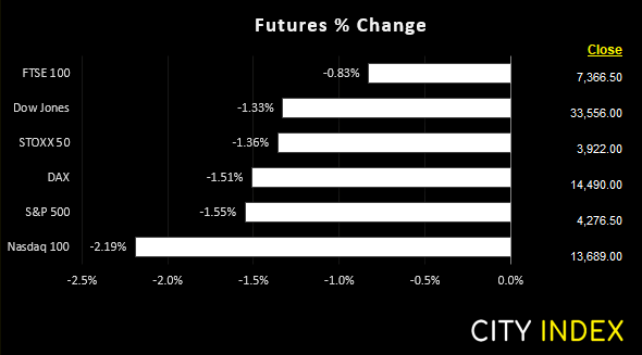 股市隔夜继续跌声一片,恒生指数领跌并进一步走低,即将以3%跌幅结束去年9月以来最为糟糕的交易日。美国股指期货全线下挫,E-迷你纳斯达克期货合约目前下跌约2.2%。富时指数是我们所追踪股指中唯一跌幅尚未超过1%的股指。