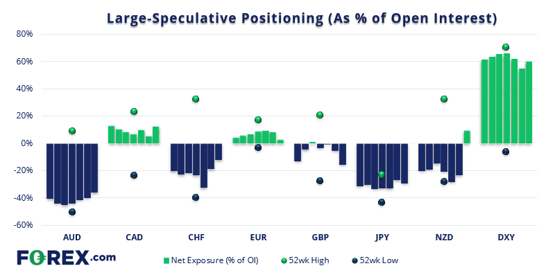 - 美元指数净多头持仓降至24周最低点。