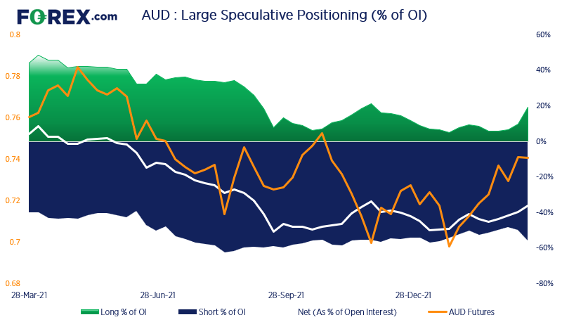 上周澳元净空头锐减,幅度为33400张,是2015年3月以来之最。空头合约减少28600张,为2020年3月以来速度最快的空头回补,而多头合约增加4800张。地缘政治与供应关切导致大宗商品价格强力反弹,携手立场强硬的美联储和温和程度减弱的澳洲联储,最终压垮强弩之末的空头,并推动澳元汇率回到74上方。如果澳洲联储进一步表露强硬立场,则我们可以说澳元甚至可能回到80上方。