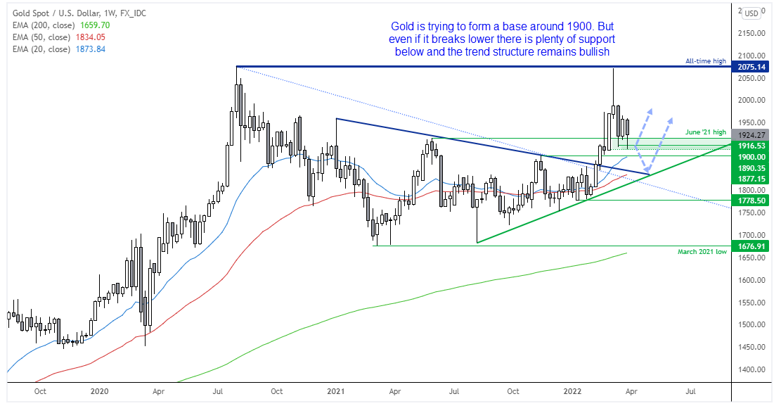 黄金正试图在1900附近企稳
