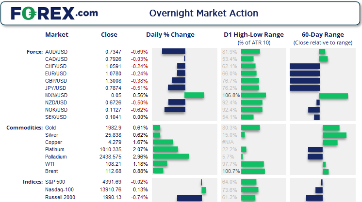 美国市场隔夜开放交易,但因为复活节长周末假期,波动性与交易量都低迷。标普500指数与纳指震荡后基本收平,投资者挣扎于收益率的上涨与俄罗斯最新一轮对乌进攻的影响当中。美国银行业绩鹰之眼。澳大利亚、香港和欧洲市场悉数于今天重新开市。