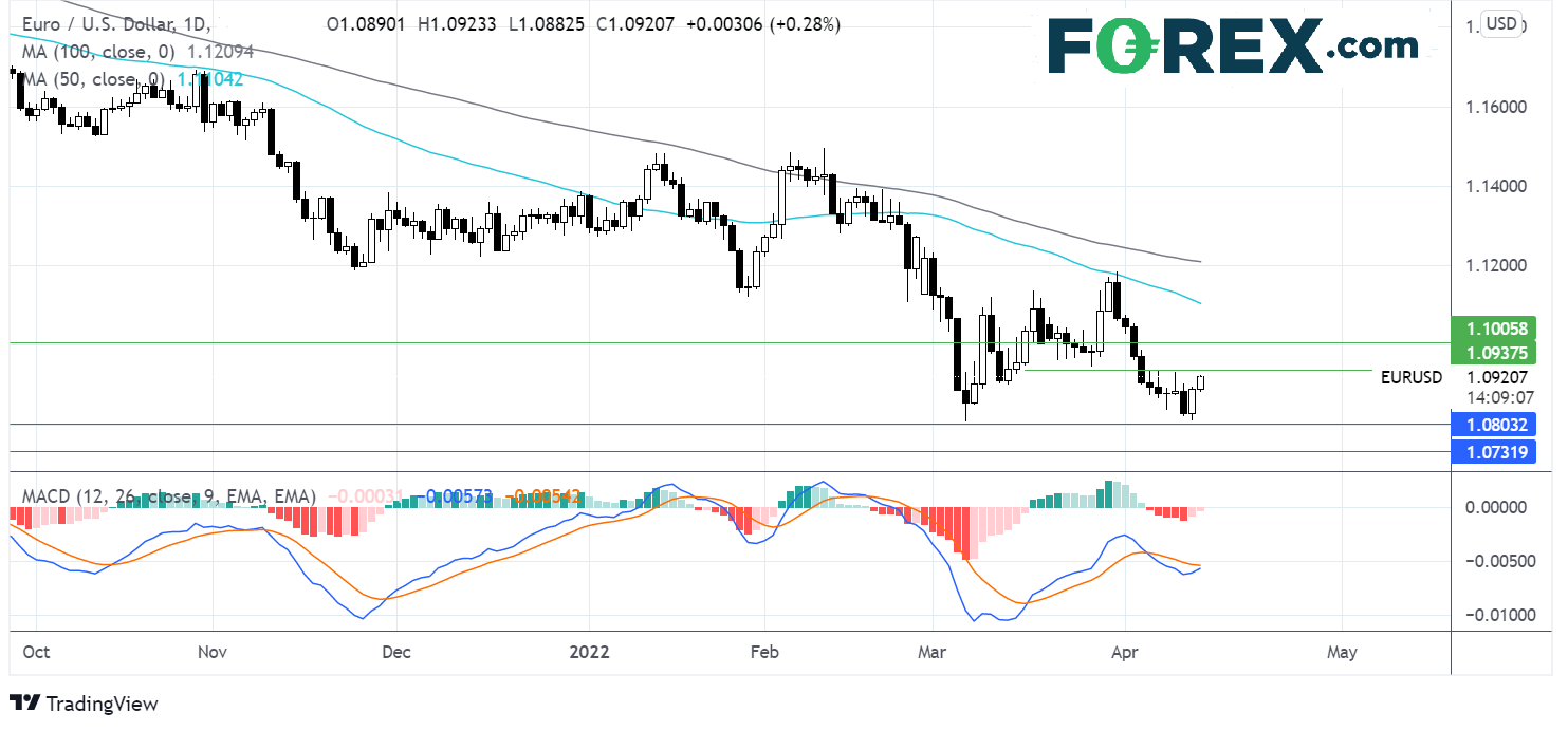 而如果走弱,或考验年内低点1.08和2020年4月低点1.0730。
