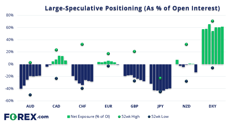 - 大型投机者对欧元和纽元期货的持仓转为净空头。