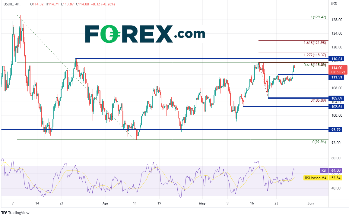过去数月里油价的上涨也导致制造商无法将成本控制在低位。2月份俄罗斯侵入乌克兰时油价就已处于90一线中轨的高点,后来更是在3月8日暴涨至129.42。油价之后回撤并多次考验95.79附近的突破位支撑,但都守住并促使油价开始再度走高。油价目前正在测试近期高点和3月8日高点到4月11日低点行情的61.8%回档位,即115.50附近。