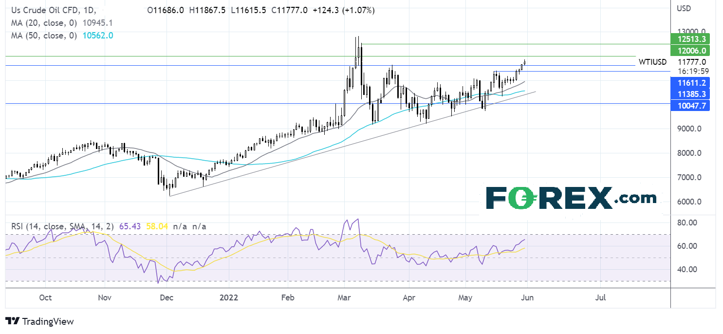 油价扩大自50期均线以来的反弹势头,重新站上多个关键阻力位。价格站上116.30伴随着RSI看涨,暗示后市或扩大上行。