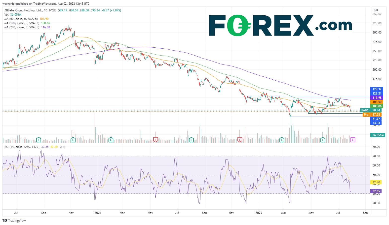 本周更新的财报因此有空间促使股价打破上述区间。过去一个月重新遭遇下行压力后不断下行,叠加最新一轮跌势成交量放大的事实,可能导致股价加速下跌。考虑到RSI跌入超卖区域后没有回升,股价应可坚守81。但如果失守,可能跌至6年低点73.30。如果跌破73.30,或打开创下2016年以来新低的空间。