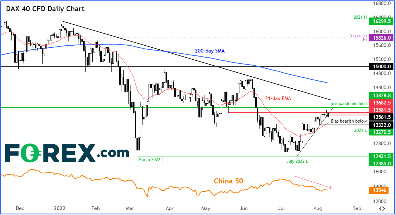 至于DAX指数本身,则在未能守住13680阻力位后调头向下: