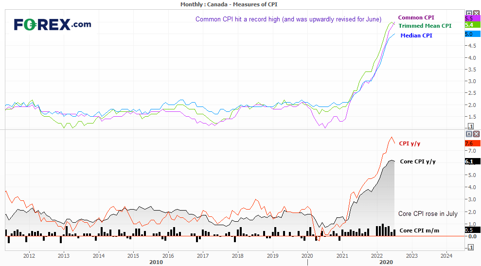 加拿大CPI年率从8.1%下降至7.6%,而核心CPI年率自6.2%下降至6.1%。尽管如此,加拿大央行关注的三个通胀指标中有两个,即普通CPI和中值CPI实际上涨。而且,普通CPI创下了历史高点并且前值上修。加元当天依然走高。