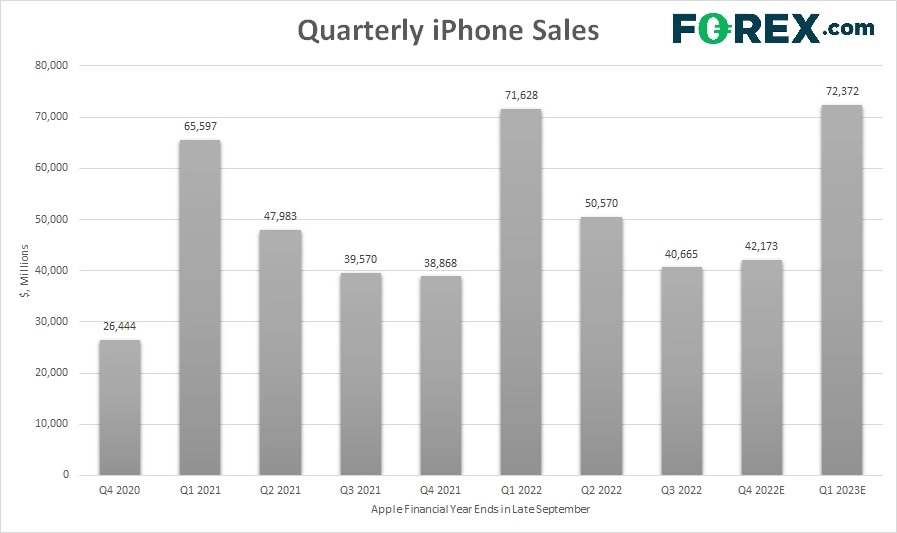 Bloomberg Intelligence的分析师表示,预计2023财年iPhone销量保持平稳,但由于平均销售价格上升,预测销售收入增加2%。如果将增长较快的服务部门和其它硬件销售纳入考虑,苹果公司在下一个财政年度的整体收入可以增长约4%。