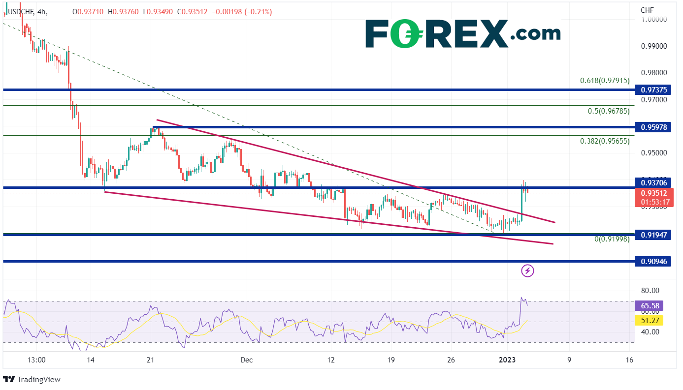 美元指数(DXY)在2023年的第一个交易日打响了第一炮。由于DXY与美元/瑞郎的相关性很强,因此该货币对也随之走高。DXY会继续走高吗?如果走高,只要强相关性成立,美元兑瑞郎应该也会走高。