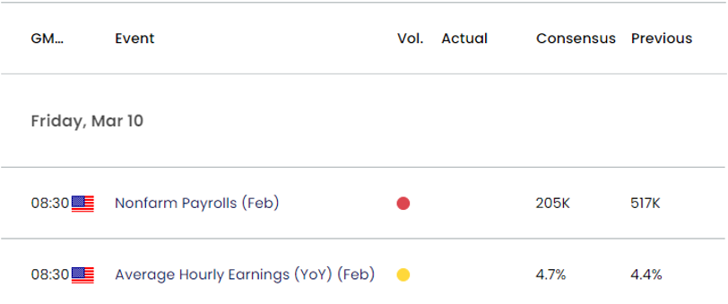 预计美国2月份将增加20.5万个工作岗位,而平均时薪在过去两个月放缓后,预计同期将达到年化4.7%。积极的进展可能会引起美元走高,迫使联邦公开市场委员会(FOMC)实施更大规模的加息,而在货币政策路径截然不同的背景下,美元可能会在3月22日美联储利率决议之前继续跑赢日元。