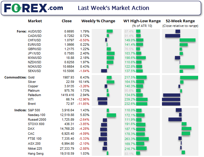 上周全球三大央行总计加息125个基点,尽管无法确定美联储、英国央行与瑞士央行此次是否为最后一次加息,但当前利率一定极其接近最终目标。近期市场动荡,银行业崩溃引发广泛担忧,这些让市场要求停止加息的呼声越来越高。但面对高通胀率,央行会停手吗?美联储连同市场交易者都在聚焦周五的核心PCE数据,瑞士央行也会密切关注。英国央行行长将在伦敦经济学院发表演讲,市场希望他能透露利率是否已达到最终水平。进入新一周,市场注意力将放在臭名昭著的空头公司Hindenburg Research与Jack Dorsey创建的支付公司Block之间的斗争。除此之外,我们还会时刻关注任何银行暴雷或金融崩盘事件。愿新一周平平安安!