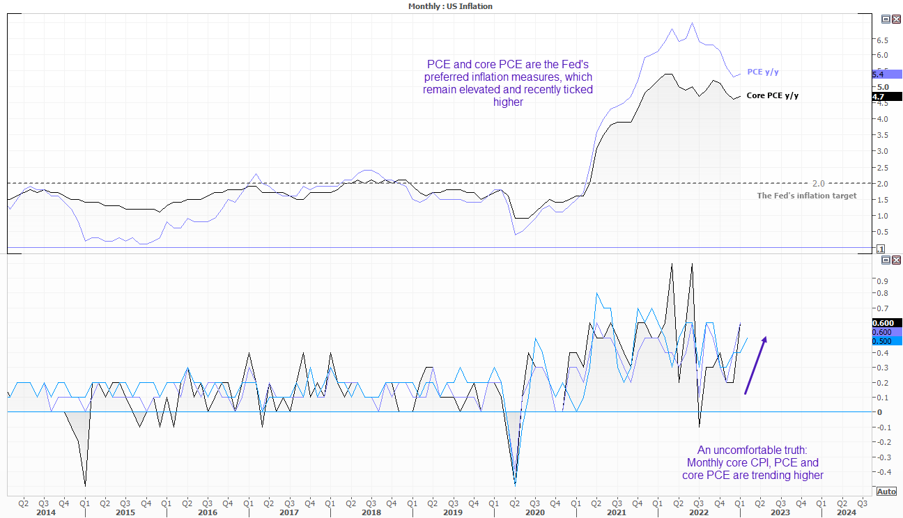 美联储首选的通胀指标将于周五公布,我们预计它将吸引大量关注。市场将疲软的零售销售和年化通胀率视为加息25个基点的明确证据,但仍怀疑美联储今年将多次降息,尽管杰罗姆·鲍威尔在最近的FOMC会议上明确反对这一看法。然而,历史是否会重演?我们在2月份的会议上也得到了类似的结果,市场消化了降息预期,而美联储成员全力以赴地释放鹰派信号,但极为强势的非农就业数据敲定后,市场只能相信美联储。那如果我们下周得到一份超出预期的PCE报告呢?首先,我们预计降息的可能性会降低,当然美元会走高。反之,疲软的通胀报告将为美元空头创造奇迹,并证明市场对降息定价的合理性。