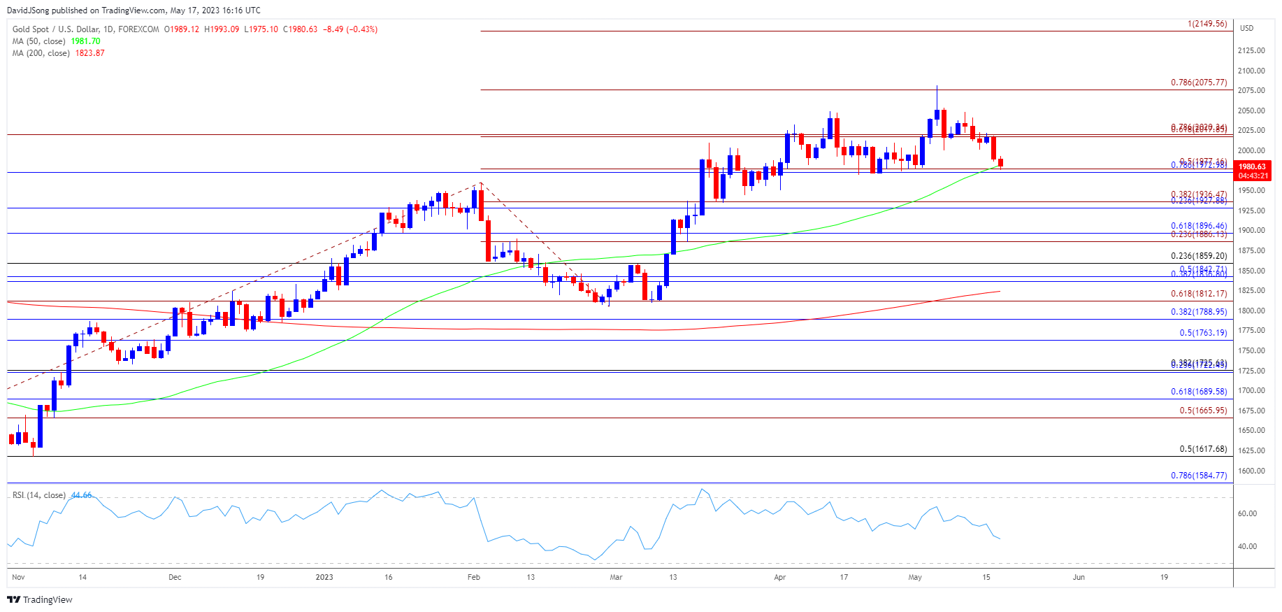 综上所述,如果美联储主席鲍威尔打压了对2023年降息的预期,这则来自美联储的重磅消息可能会使金价承压,而黄金可能会下探4月低点(1950美元),因为它未能守住月线开盘区间。