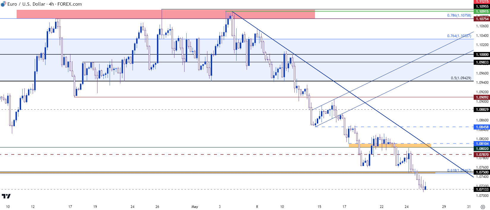 图表由James Stanley绘制,Tradingview上的欧元/美元