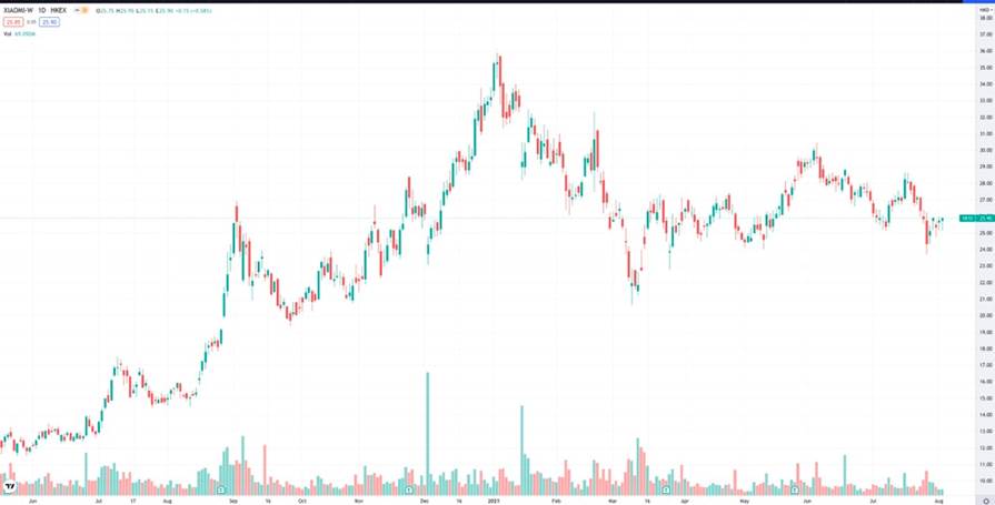小米股价走势。来源:Tradingview,截至2021年8月3日收盘