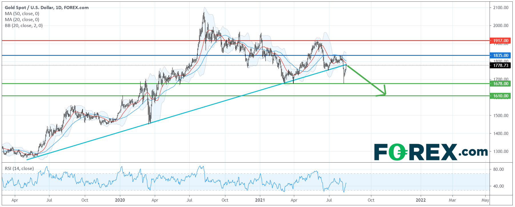不过黄金依然预期将受到考验,美联储周三将发佈最近一次FOMC会议纪录,投资者将观望会否有任何关于缩减量宽的讨论。此外,美国周二亦会公佈7月零售销售数据,市场预期按月跌0.2%。