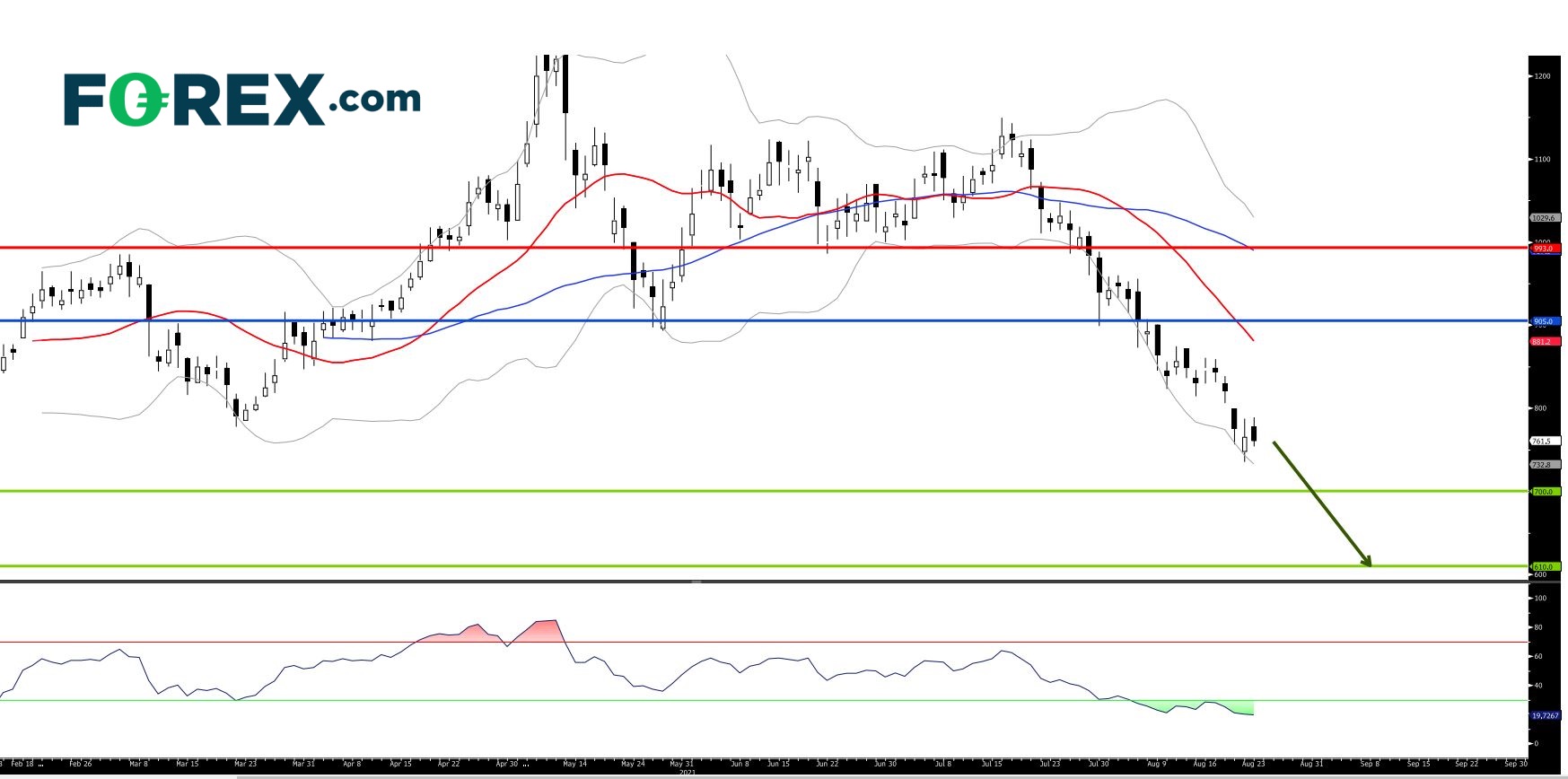 纵使相对强弱指标已跌至超卖水平30点以下,仍未见看涨背驰的讯号出现。故整体技术格局维持看跌。