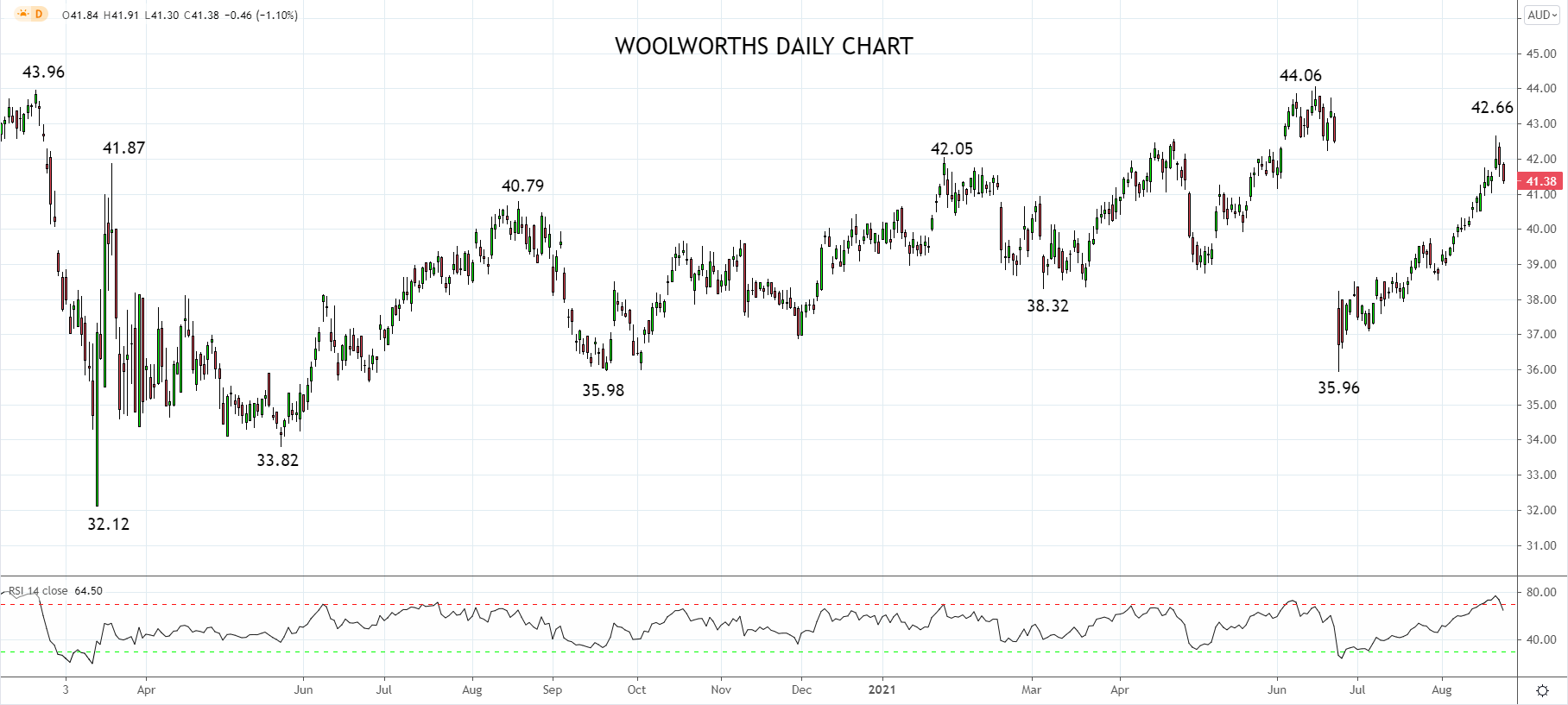Woolworths是一只防御股,在去年澳大利亚新冠疫情期间,随着人们纷纷囤积卫生纸、意大利面和其他食品,公司业绩明显受益。最近这波新冠疫情影响波及悉尼、墨尔本和堪培拉等地,引发新一轮恐慌性抢购,Woolworths应声推高至42.00澳元上方。