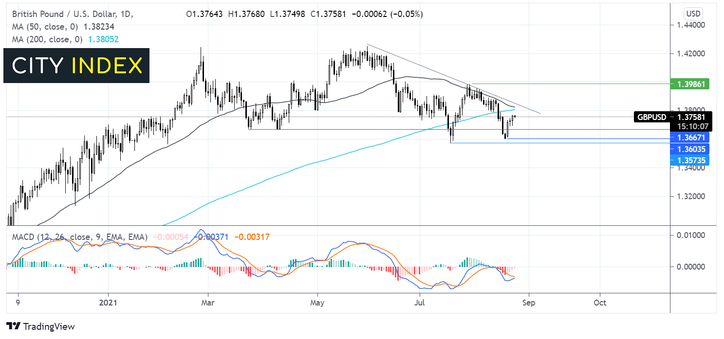 英镑/美元静待杰克逊霍尔央行会议、美国个人消费支出和第二季度GDP(二次读值)