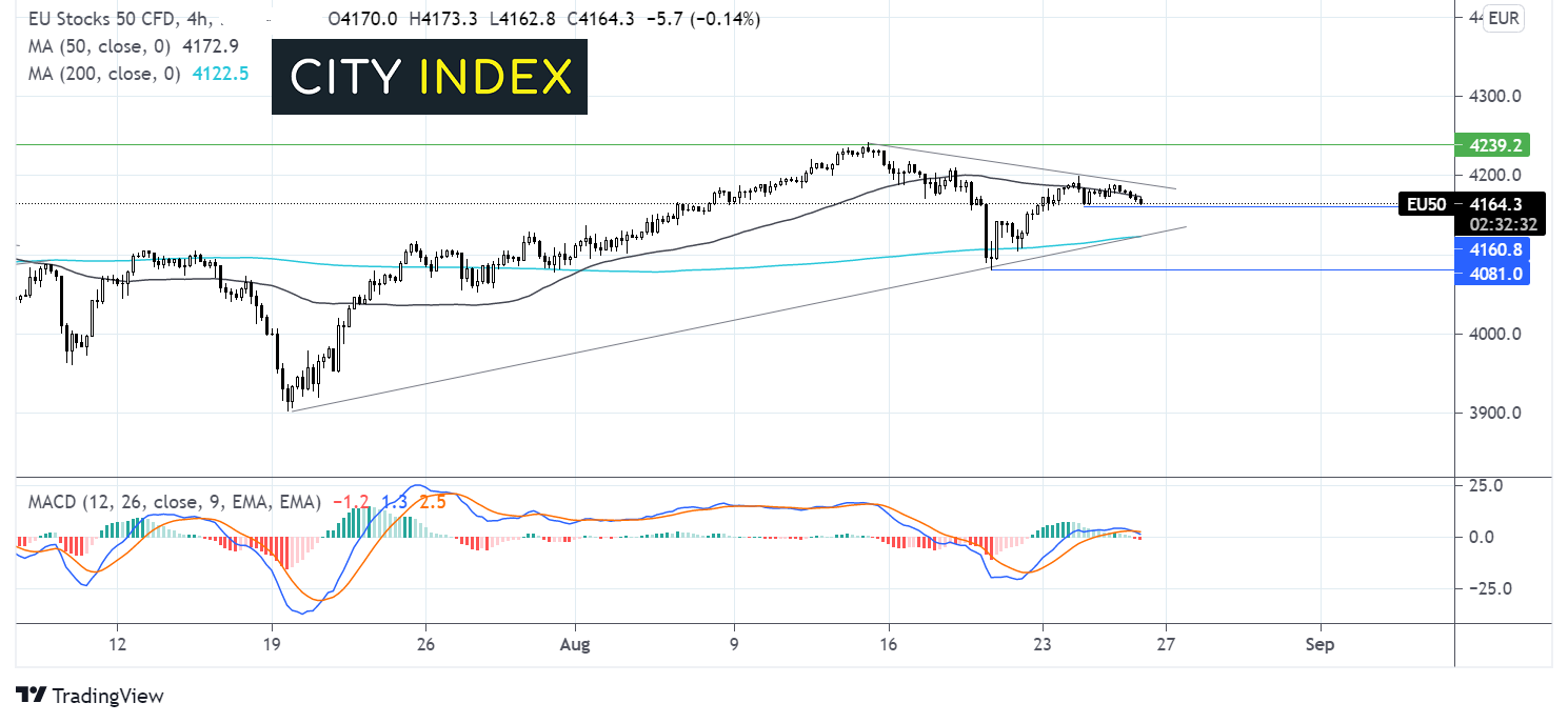 杰克逊霍尔央行会议召开前,欧洲股指在谨慎交投中指向下行。
