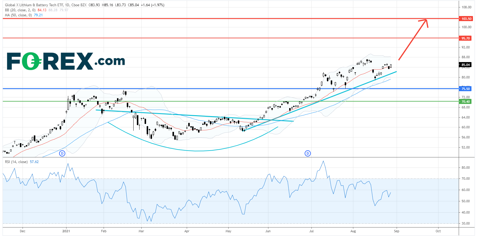 Global X锂、电池ETF(LIT.US): 走势看涨,料先见95.70美元