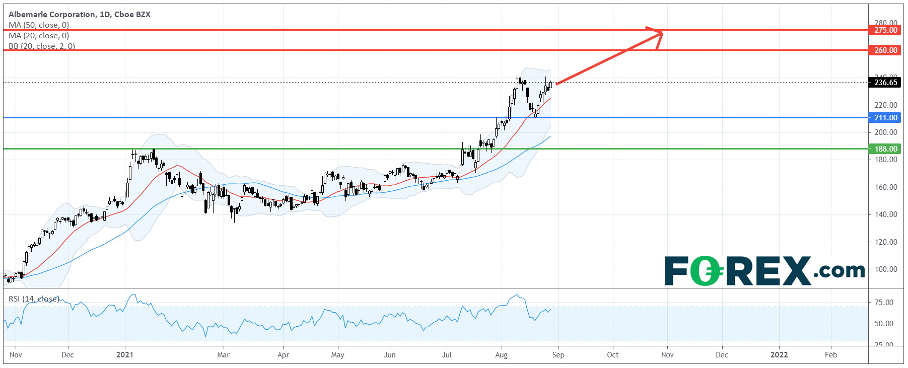 Albemarle (ALB.US):涨势强劲,首目标260美元