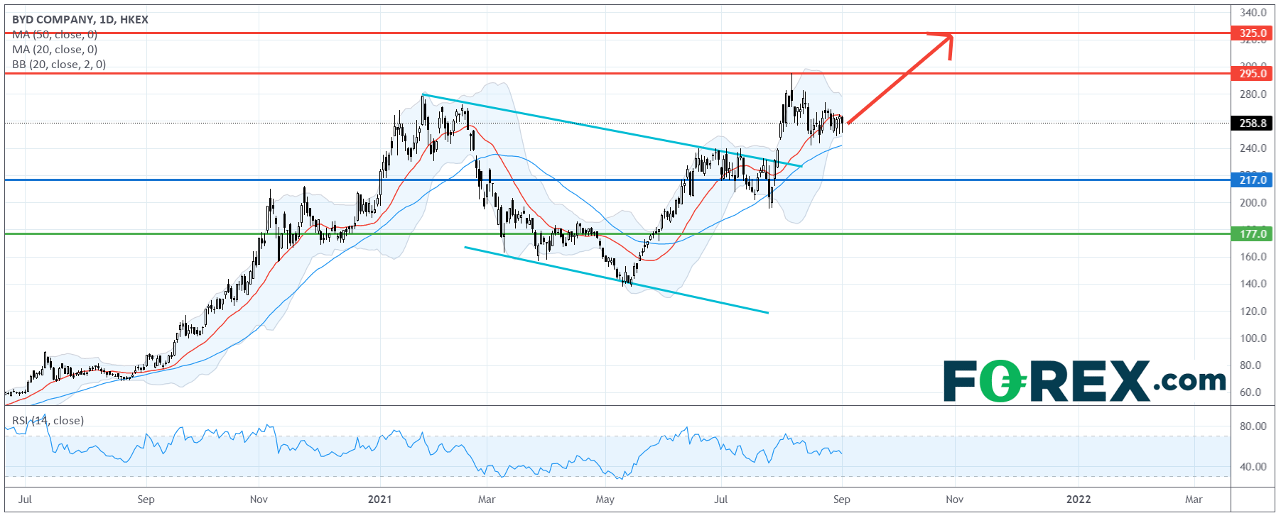 看涨的投资者可将217.00港元视为主要支持 (止损) 位,上行目标在295.00港元及325.00港元。