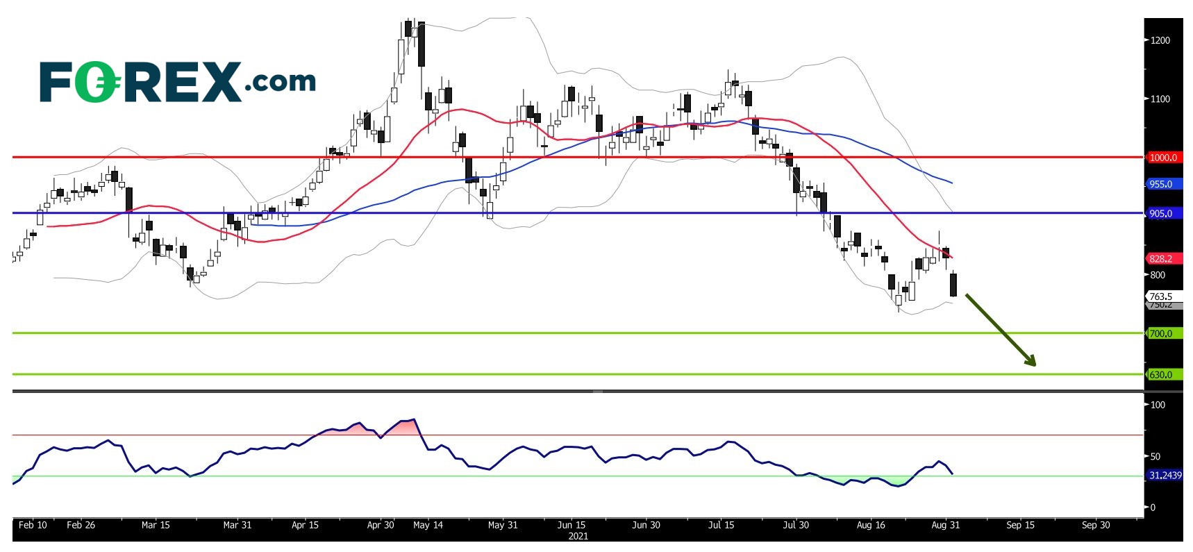 看跌的主要阻力 (止损) 位已下调至905元人民币。