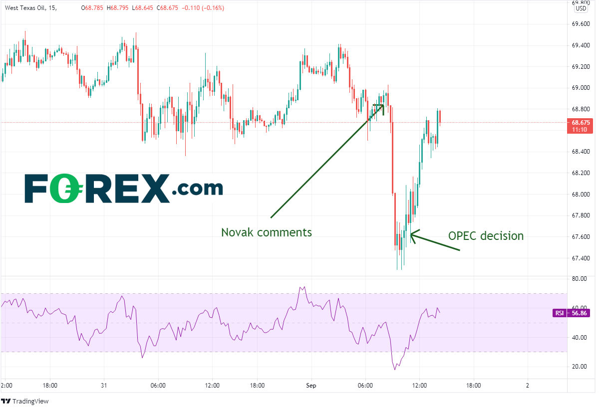 受Novak评论的打击,西得州原油自69.00附近下跌,最低至67.29。但在OPEC结束会议并宣布维持7月决议的作用下,西得州原油将跌幅几乎尽数收回。