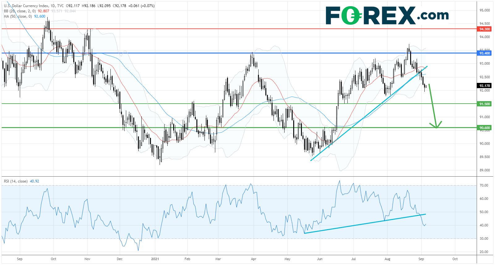 只要93.40的主要阻力(止损)不破,美元指数预将回落至91.50和90.60作下行目标。