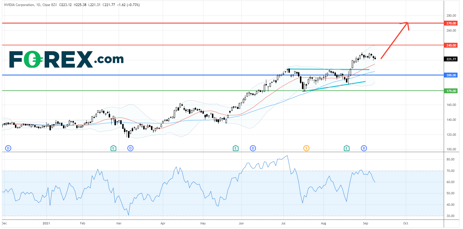 只要股价守在主要支持 (止损) 位200.00美元之上,料将再创新高,并上望240.00美元和270.00美元。