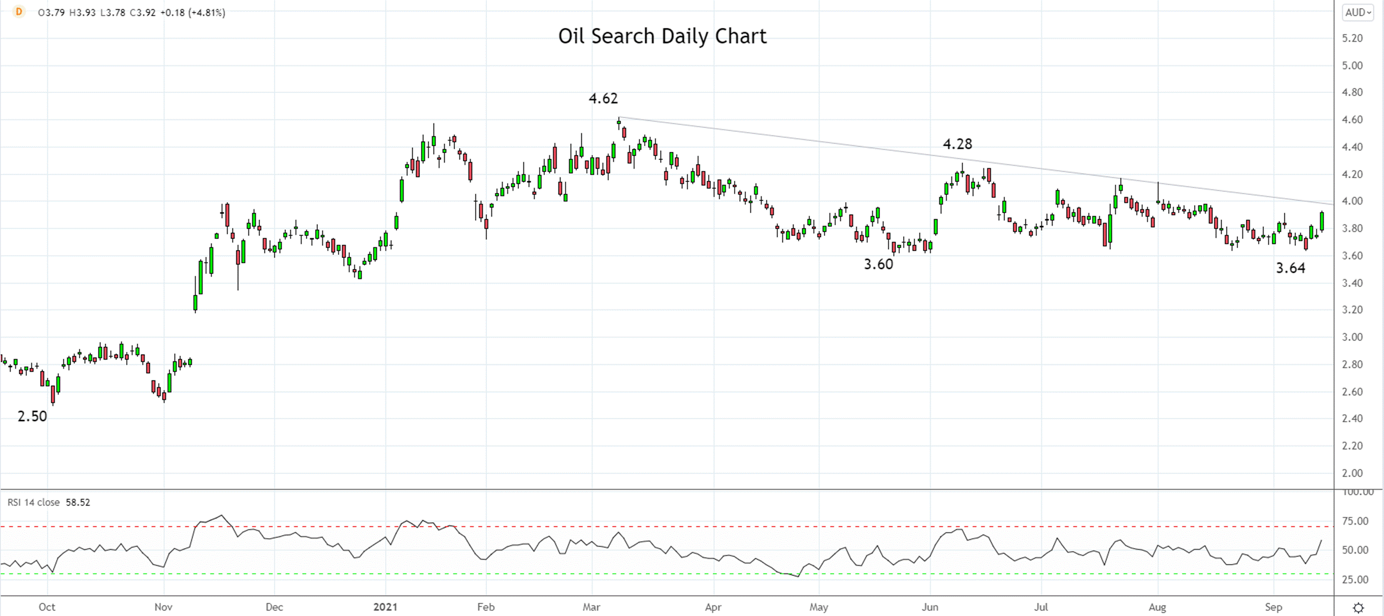 一旦油价继续上涨,今天上涨了近5%的Oil Search的股价也有望随之走高。