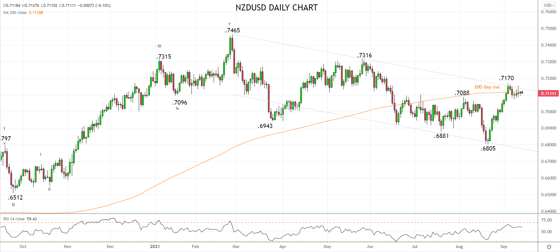 话虽如此,只要纽元/美元保持趋势通道阻力及近期高点0.7140/70之下,则仍面临短线下探0.7000区域的风险。请注意,若纽元/美元突破并收于0.7175之上,回调预期落空,货币对或攻向0.7300区域。