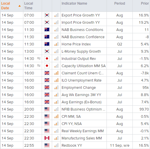 在下周的FOMC会议召开之前,本周有大量的经济数据将要披露。此时交易者尝试解读央行是否将开始收缩量化宽松,所以,美元走势可能还是很容易受到接下来揭晓的经济数据的左右。其中最重要的数据是定于AEST时间22:30,即今晚美国时段发布的通胀读数。