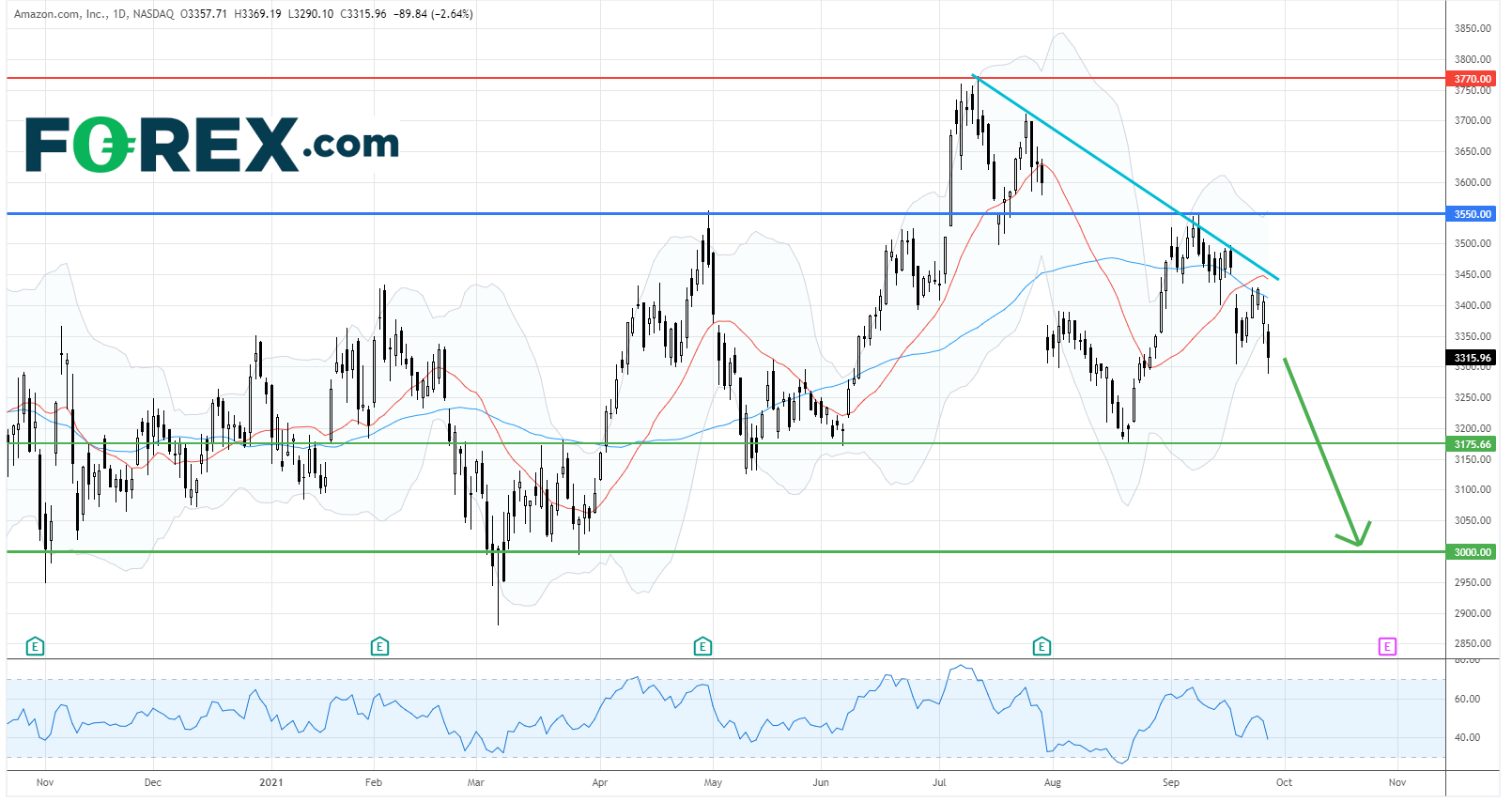 亚马逊 Amazon.com (AMZN) : 走勢乏力,料跌回3,175美元