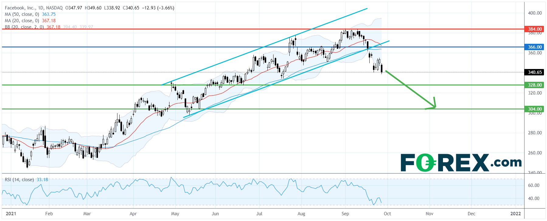 脸书Facebook (FB):走势转弱,首下行目标328美元
