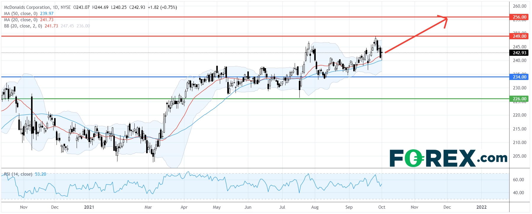 麦当劳McDonald's (MCD.US):温和上涨,首目标249美元