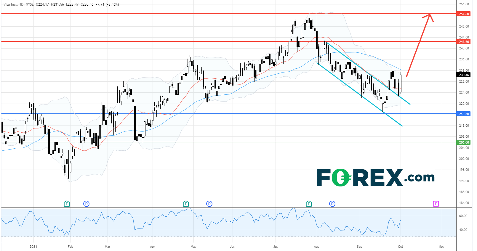 Visa 公司 (V.US) : 反弹势头渐形,料先见242.50美元